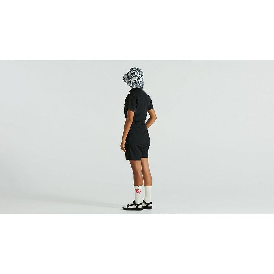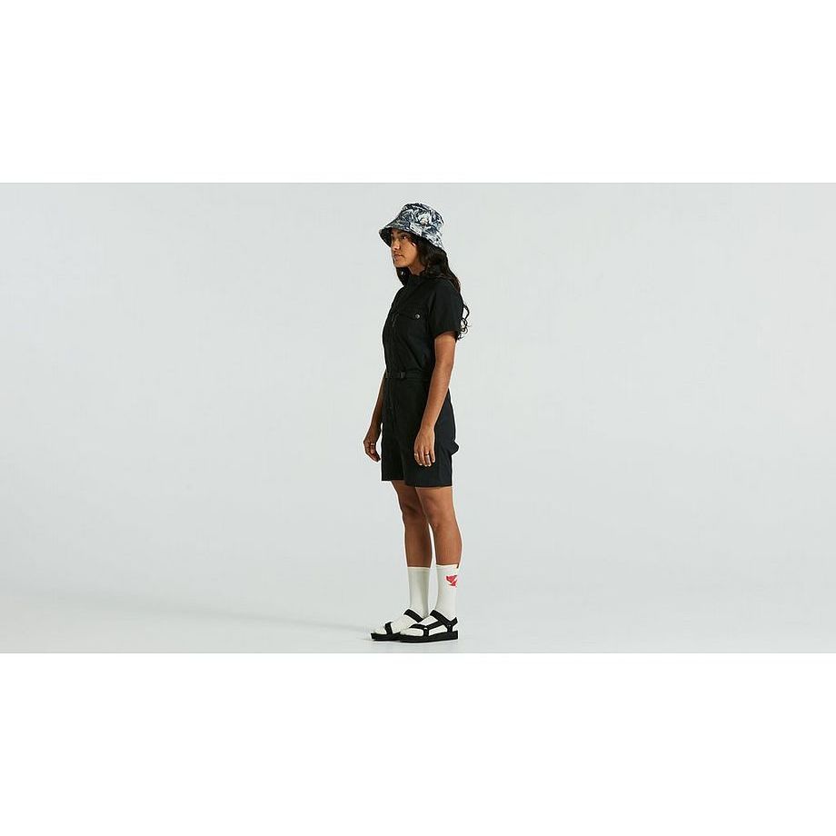 Versatile one-piece garment combining performance and comfort on and off bike. Torso in G-1000 Lite fabric that can be waxed for enhanced wind- and water-resistance. 4-way stretch on the back provides great freedom of movement. Can be layered with cycling shorts underneath. Adjustable cam-lock waistband. Functional pockets, including two chest pockets with zippers, napoleon pockets on each side, and integrated thigh pockets. When you need more visibility at night or on dark bike tracks, fold up the cuffs to expose the reflective details inside the hems. Part of the Specialized/Fjällräven series for urban rides and bikepacking adventures.